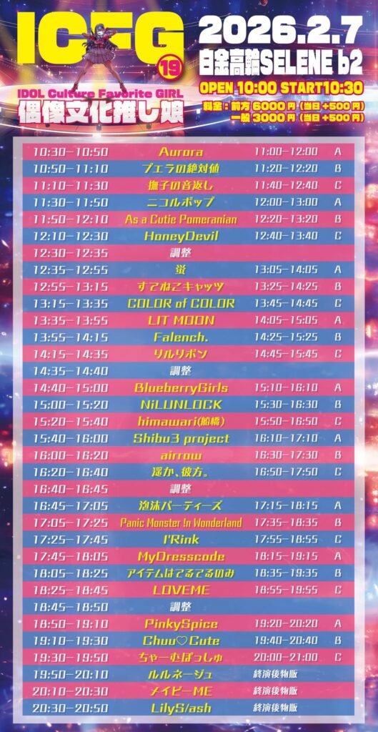 2025/2/7(土)に開催いたします ICFG〜偶像文化推し娘〜 vol.19 についての詳細をお知らせいたします。