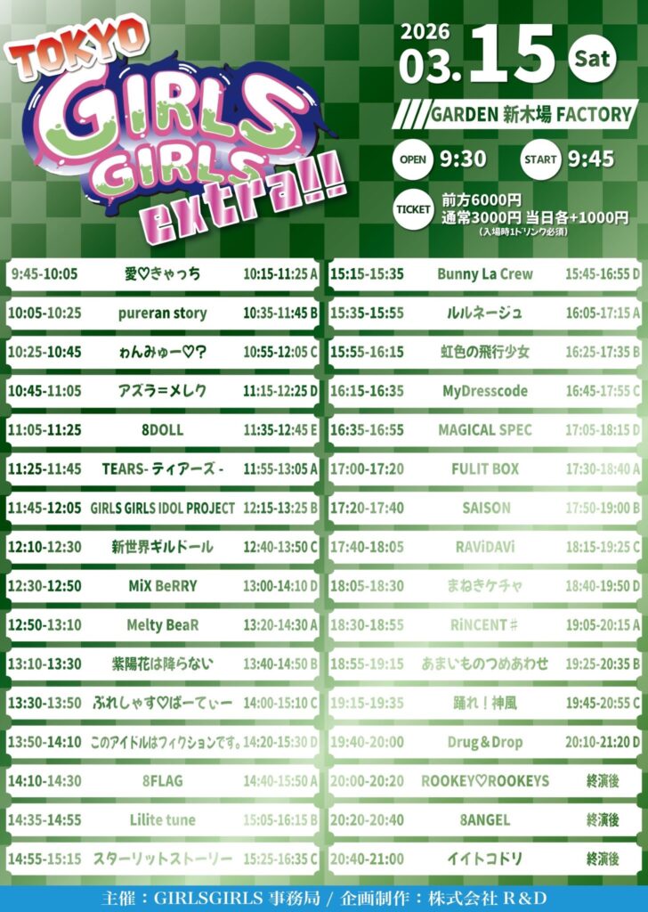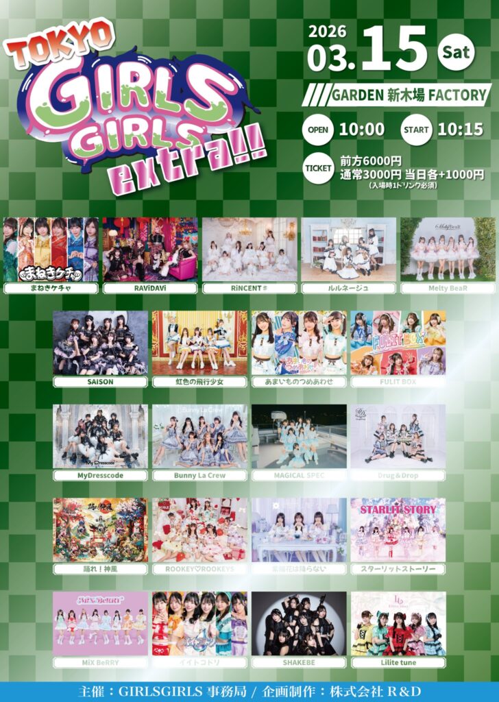 2026/3/15(日)に開催いたします、TOKYO GIRLS GIRLS extra!! 出演についての詳細をお知らせいたします。