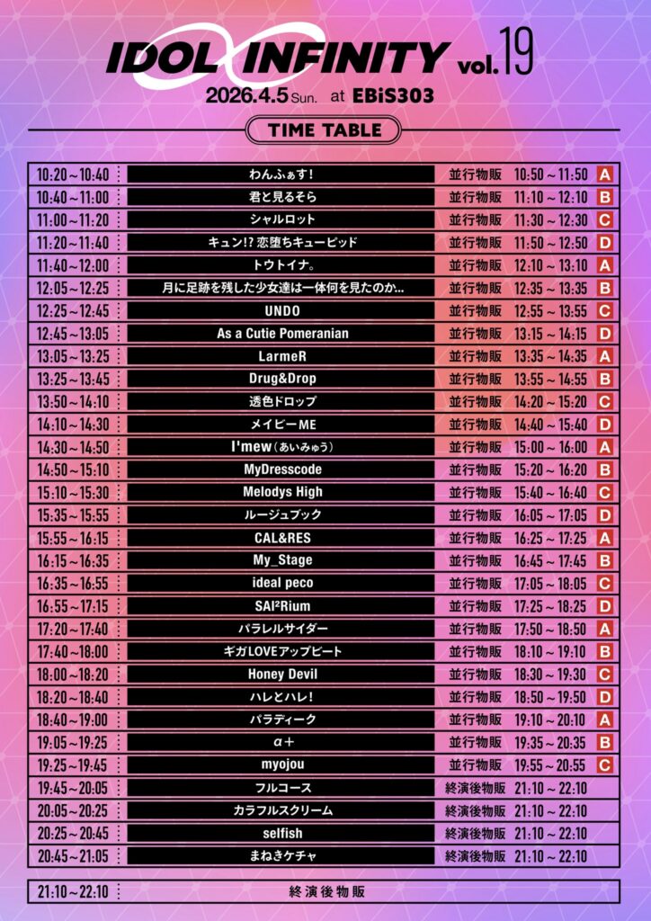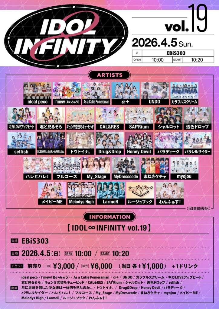 2026/4/5(日)に開催いたします、IDOL ∞ INFINITY vol.19 出演についての詳細をお知らせいたします。