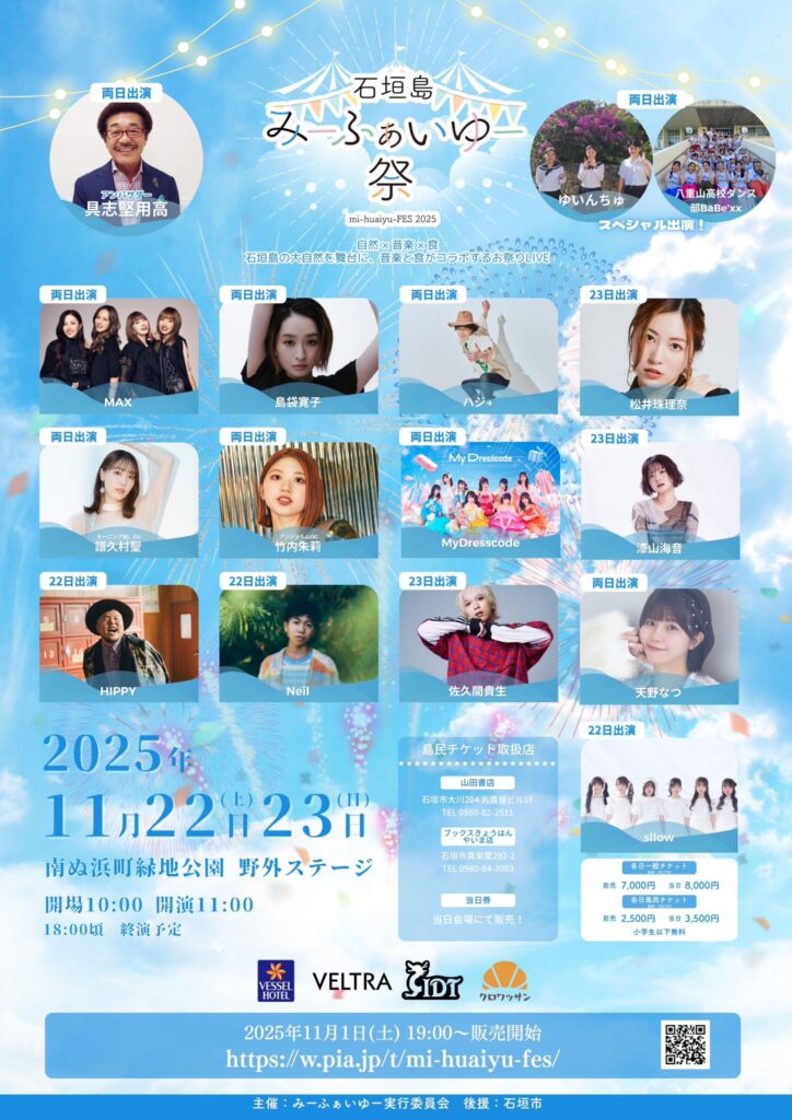 2025/11/22(土)、11/23(日)に開催いたします、石垣島「みーふぁいゆー祭」出演についての詳細をお知らせいたします。