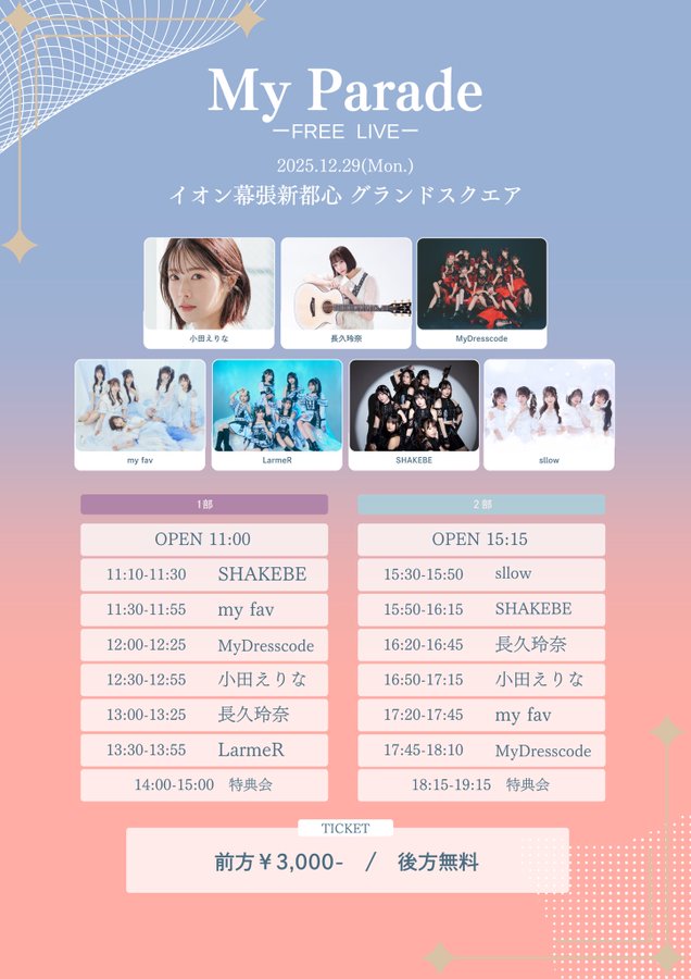 2025/12/29(月)に開催いたします、MyPrade-Free live 出演についての詳細をお知らせいたします。
