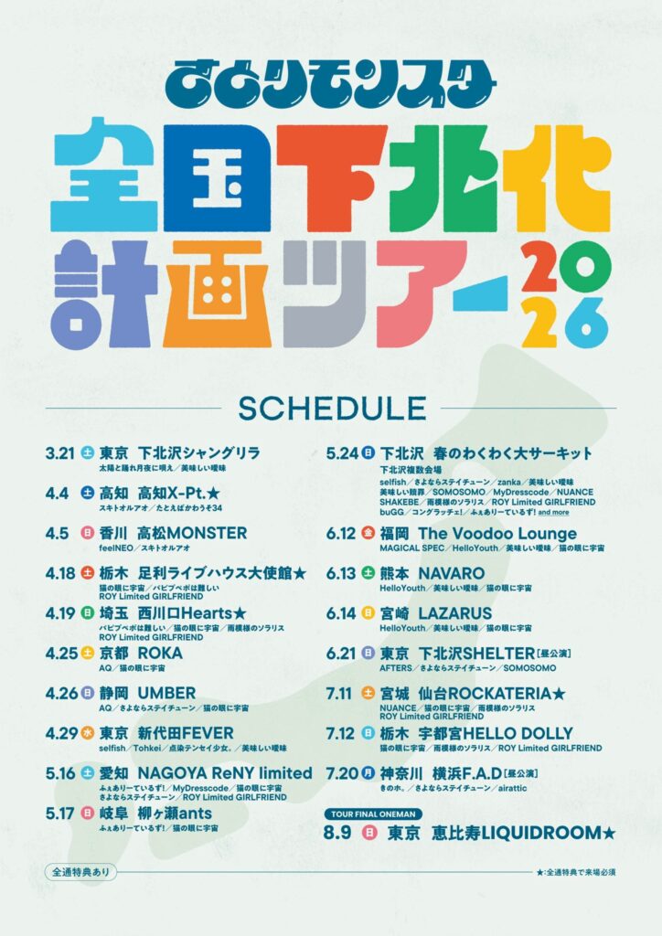 2026/5/16(土)、5/24(土)に開催いたします、さとりモンスター 全国下北化計画ツアー2026についての詳細をお知らせいたします。