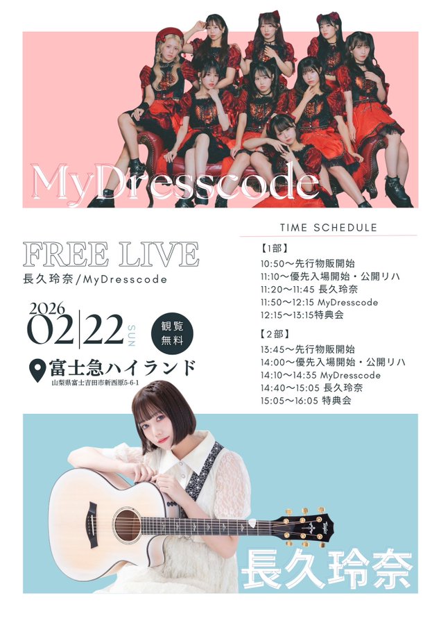 2026/2/22(日)に開催いたします、FREE LIVE 出演についての詳細をお知らせいたします。