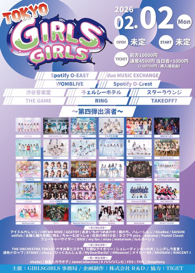 2026/2/2(月)に開催いたします、TOKYO GIRLS GIRLS出演についての詳細をお知らせいたします。