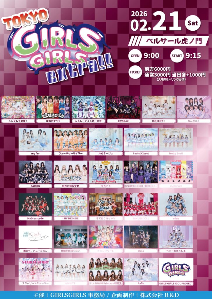 2026/2/21(日)に開催いたします、TOKYO GIRLS GIRLS extra!!出演についての詳細をお知らせいたします。
