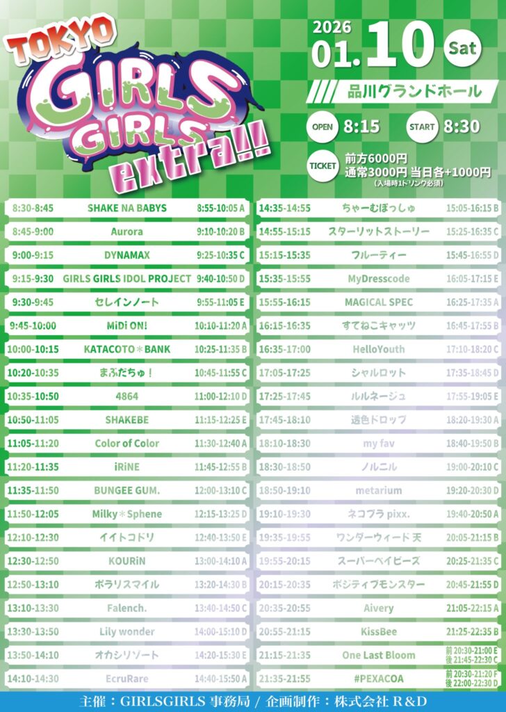 2026/1/10(土)に開催いたします、TOKYO GIRLS GIRLS extra!!出演についての詳細をお知らせいたします。