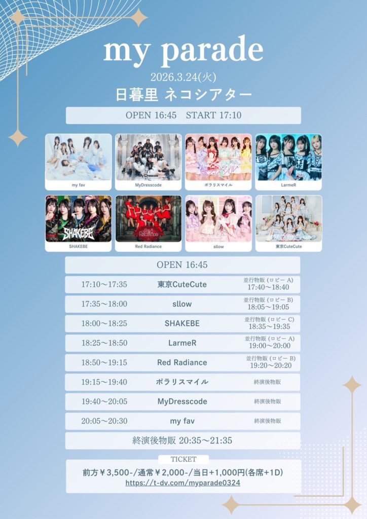 2026/3/24(火)に開催いたします、My Parade出演についての詳細をお知らせいたします。